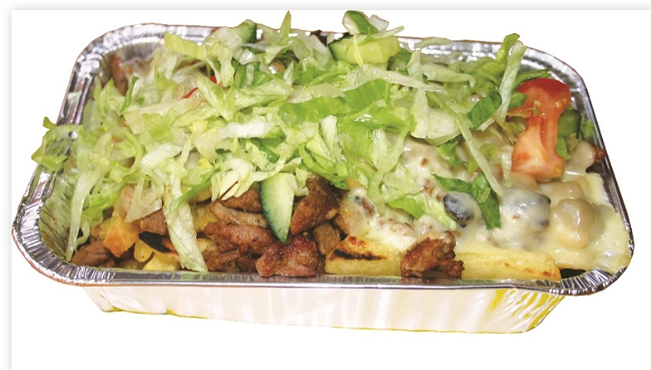 Patat, kipshoarma, onze huisgemaakte Rexx saus, gesmolten kaas en salade. Smaakvol en uniek, Inclusief knoflooksaus en sambal. Salade optioneel apart geserveerd